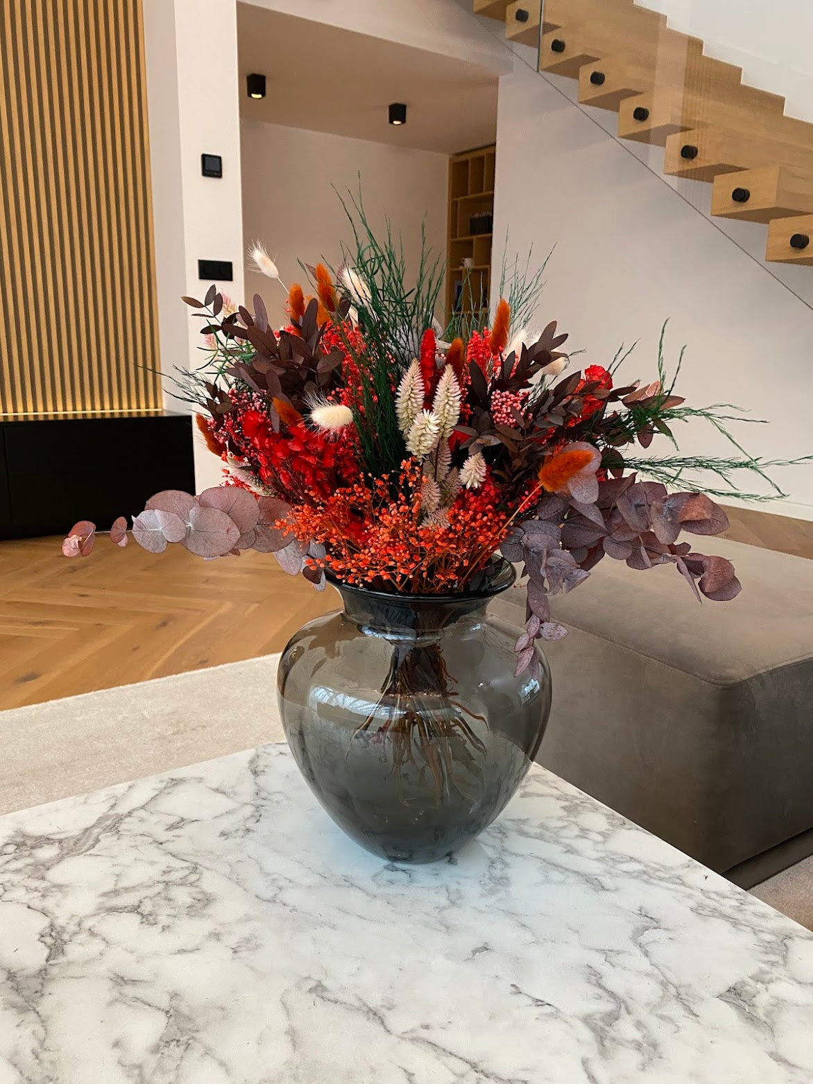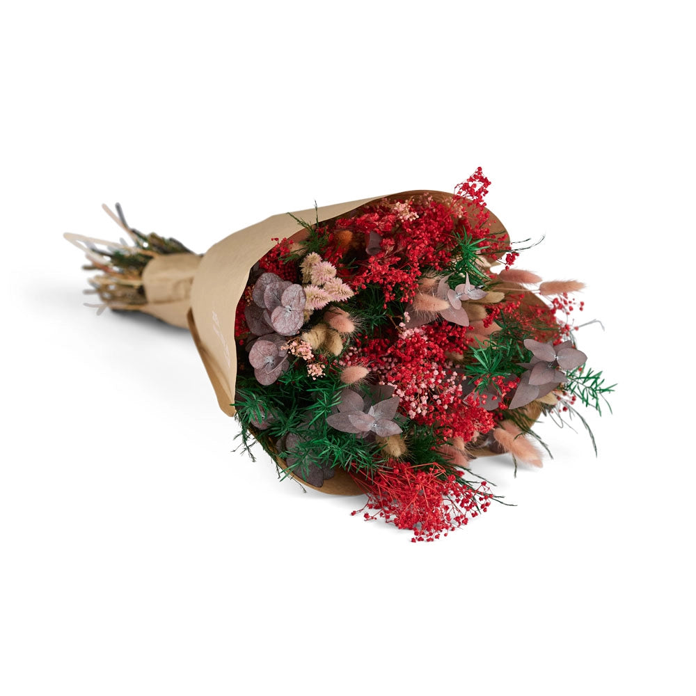 Soe ja lopsakas Rubra erksa värvigammaga on valmistatud 100% ehtsatest kuivatatud ja säilitatud lilledest. Iga kimp seotakse käsitsi tellimuse alusel, mistõttu on iga eksemplar pisut erineva koosluse ja oma iseloomuga.